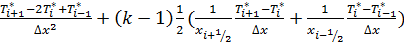 В формулах (5) и (6) температура Т* рассчитывается по выражению 3. Явная разностная схема для расчета температуры Выражая из разностных уравнений (1), (2), (5) и (6) неизвестную температуру а) внутренняя граница i = 0: