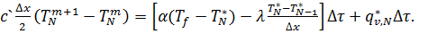 В формулах (1) и (2) температура Т* есть некая средняя температура на интервале времени Δτ: Т* =(1- μ) где μ - коэффициент веса, учитывающий вклад температуры на (m + 1) - м временном слое При этом значении μ = 0 приводит к равенству Т* =