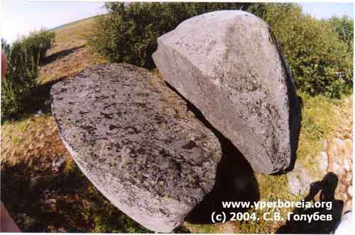 Лопари построили, чтобы удобнее было гонять оленей? В горы окрестные Дёмин ходил, где были найдены остатки фортификационных сооружений, гигантские каменные блоки, многократно перемолотые проходившими ледниками, но всё ещё хранящие следы обработки.