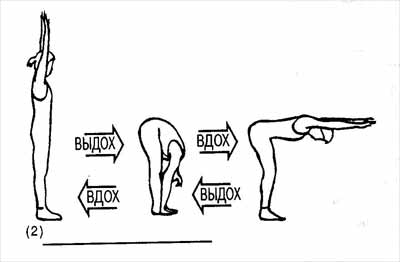 При выполнении шалабхасаны очень сильное укрепляющее действие оказывает задержка дыхания после вдоха. Шалабхасана сама по себе располагает к глубокому выдоху и задержке после выдоха. Любое изменение дыхания и положения тела особым образом меняет характер воздействия асаны. Во всех показанных здесь вариантах ноги, руки и голова возвращаются на пол на выдохе. Либо вы можете выдыхать, когда они подняты, и это будет оказывать сильное воздействие на область живота. Человеку с крепатурой ног не заказано с пользой выполнять классическую паш-чиматанасану, показанную на рисунке 20 (1). Наклон вперед можно увеличить, например, за счет небольшого сгиба в коленях на выдохе (3).