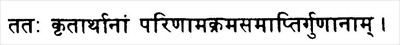 Существует связь между моментом — основной единицей времени — и последовательностью. В основе и того, и другого лежит изменение характеристик объекта. Последовательность связана с переменами. Время по своей сути относительно, так как является основой перемен. Цепь перемен основана на последовательных изменениях в характеристиках (см. сутры 3.15 и 3.52). Когда человек достигает состояния, описанного в сутре 4.32, перемены, происходящие в объектах восприятия, перестают складываться в непредсказуемую и способную причинять страдания последовательности. Теперь индивидуум может управлять переменами.
