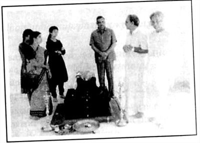 Сарасвати Свами со своей свитой во время визита в Кришнамачарья-йогамандир, 1993 г.