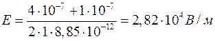 Приклад 3. Електричне поле створене двома нескінченними паралельними зарядженими пластинами з поверхневими густинами