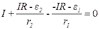 Приклад 1. Дві паралельно з’єднаних елемента з ЕРС e1 = 2 В та e2 = 4 В та внутрішніми опорами r1 = 1 Ом та r2 = 1,5 Ом замкнуті на внутрішній опір R = 1,4 Ом. Знайти струм в кожному з елементів і в усьому колі. Розв’язання. Довільно виберемо напрям струмів у контурах та напрям обходу. Для вузла А застосуємо перше правило Кірхгофа (рис. 6.)