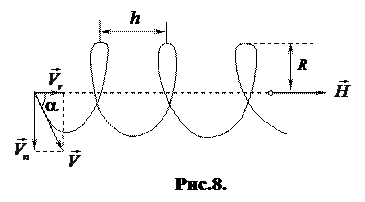 де v − швидкість частинки, a − кут між швидкістю та напруженістю поля. Оскільки сила Лоренца є доцентровою силою, Fл = Fд, (2) то під дією сили Лоренца протон в магнітному полі буде рухатись по колу в площині, перпендикулярній до поля, зі швидкістю, що дорівнює нормальній складовій початкової швидкості. Одночасно протон буде рухатись і вздовж поля зі швидкістю vr, що дорівнює складовій початкової швидкості у напрямку поля (vr = v∙cosa). Радіус кола знайдемо із співвідношення (2):