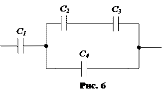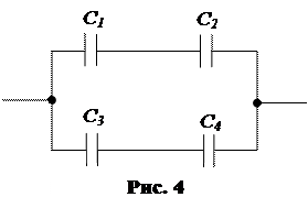 38. Конденсатори з’єднані так, як показано на рисунку 4. Електроємності конденсаторів С1 = 0,2 мкФ, С2 = 0,1 мкФ, С3 = 0,3 мкФ, С4 = 0,4 мкФ. Визначити електроємність С батареї конденсаторів.