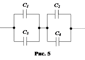 39. Конденсатори ємностями С1 = 10 нФ, С2 = 40 нФ, С3 = 2 нФ і С4 = 30 нФ з’єднані так, як це показано на рисунку 5. Визначити електроємність С з’єднання конденсаторів.