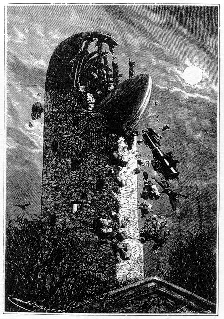 Надо было выбросить его труп в пространство так же, как моряки выкидывают в море мертвецов. По указаниям Барбикена, вся процедура похорон требовала крайней расторопности, чтобы предотвратить потерю воздуха, который благодаря своей эластичности мог быстро улетучиться в мировое пространство. Болты правого окна, шириной около тридцати сантиметров, были осторожно отвинчены, и Мишель, подняв на руки труп Сателлита, приготовился вышвырнуть его в окно. При помощи мощного рычага, позволявшего преодолеть давление внутреннего воздуха на стенки снаряда, стекло быстро повернулось на шарнирах, и Сателлит был выброшен… Из снаряда улетучилось при этом самое большее несколько молекул воздуха, и вся операция была выполнена так удачно, что впоследствии Барбикен уже не боялся таким же манером отделываться от всякого хлама, загромождавшего их вагон. ГЛАВА ШЕСТАЯ. Вопросы и ответы 4 декабря хронометры показывали пять часов земного утра, когда путешественники проснулись после пятидесятичетырехчасового путешествия. Они провели в снаряде только пятью часами сорока минутами больше половины предполагаемого срока, а между тем ядро успело пролететь уже семь десятых всего пути. Это несоответствие объяснялось непрерывным снижением скорости снаряда. Когда друзья через нижнее окно поглядели на Землю, она показалась им темным пятном, померкшим в солнечном сиянии. Ни серпа, ни пепельного света — ничего уже не было. На следующий день в полночь нужно было ждать «новоземелия» в то самое время, когда Луна вступит в фазу полнолуния. Наверху ночное светило становилось все ближе и ближе к траектории снаряда, так что встреча должна была произойти точно в назначенный срок. Весь черный небосвод был испещрен множеством сверкающих точек, которые как будто медленно передвигались, но. вследствие огромных расстояний, отделяющих их от снаряда, относительная величина их не изменялась. Солнце и звезды видны были так же, как и с Земли. Луна же хотя и казалась значительно крупнее, но в сравнительно слабые подзорные трубы путешественников еще нельзя было наблюдать деталей ее поверхности, ни топографического или геологического строения. Время протекало в непрерывных беседах. Говорили главным образом о Луне; каждый высказывал все, что знал: Барбикен и Николь, как и всегда, делились научными сведениями, а Мишель угощал их своими неистощимыми фантазиями. Много толковали о самом снаряде, о его положении в пространстве и направлении пути, о возможных случайностях, о необходимых предосторожностях, которые следовало принять при падении на Луну. Как-то раз во время завтрака один вопрос Мишеля о снаряде вызвал очень любопытный ответ Барбикена, который стоит здесь привести. Мишеля интересовало, что случилось бы со снарядом, если бы при начальной скорости полета его остановило какое-либо препятствие. — Я не представляю себе, — сказал председатель «Пушечного клуба», — что могло бы остановить снаряд? — Ну все-таки предположим, что это случилось бы? — Твое предположение совершенно невероятно, — ответил Барбикен. — Разве что сила толчка оказалась бы недостаточной; но в таком случае скорость снаряда стала бы снижаться постепенно, а внезапной остановки все-таки произойти не могло. — Ну а если бы он столкнулся с каким-нибудь телом? — С каким же, например? — Да хоть с тем же огромн