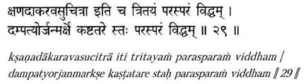 Три накшатры управляются одной планетой. Девять следующих друг за другом накшатр, составляющих четыре знака или 120°, называются парьяей. В шлоках 21-22 говорится, что брак женщины, родившейся, к примеру, в Пурвапхалгуни, будет неблагоприятным, если Луна в гороскопе ее супруга располагается в Хаете, Свати или Анурадхе, а также в 1-й четверти Шрава- ны и Рохини, 4-й четверти Шатабхиши и Ардры и в 3-й четверти Уттарабхадрапады и Пушьи. Шлока 22-23