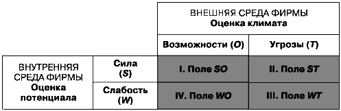 Рис. 5.5. Общий вид матрицы SWOT-анализа