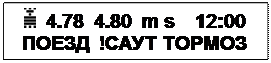 При появлении указанного сообщения СУТП считается неисправной и не может выполнять служебное торможение по командам от САУТ. 14.4. На дисплее при поступлении команды служебного торможения от САУТ выводится сообщение вида: