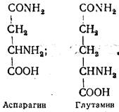 Глутаминовая (α-аминоглутаровая) кислота впервые выделена из гидролизата пшеничного зерна в 1868 г. Входит в состав белков растительного и животного происхождения. Так же, как и аспарагиновая кислота, участвует в реакциях переаминирования и связывания аммиака. Глутаминовая кислота принимает также участие в образовании у-аминомасляной кислоты, глутатиона, синтезе орнитина и глюкозы, реакциях окислительного дезаминирования, декарбоксилирования аминокислот. Аспарагин и глутамин являются производными двух предыдущих аминокислот, в которых карбоксильные группы, удаленные от аминогрупп, амидированы. Амиды аспарагиновой и глутаминовой кислот входят в состав белков и играют важную роль в метаболизме: