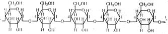 Полисахариды — высокомолекулярные соединения, полимеры. Их молекулярная масса измеряется тысячами и миллионами. Они не растворяются в воде и не обладают сладким вкусом. По своему химическому строению их можно разделить на две большие группы; гомополисахариды, построенные из остатков какого-либо одного моносахарида (глюкоза, фруктоза и др.) и гетерополиса- хариды, состоящие из остатков различных моносахаридов и их производных. Гомополисахариды различаются природой моносахаридов, которые входят в их состав. Так, из остатков глюкозы построены глюканы (крахмал, гликоген, целлюлоза и др.), из остатков фруктозы — поли-фруктозиды (инулин и др.). Путем соединения большого количества остатков галактуроновой кислоты образуются пектины, остатков глюкозамина — хитин панциря членистоногих. Гетерополисахариды делятся на гемицеллюлозы, мукополисаха-риды, камеди и слизи. В соответствии с физиологическими функциями полисахариды можно разделить на структурные, образующие опорные ткани (целлюлоза, пектиновые вещества, хитин); резервные, которые постепенно потребляются в процессе обмена (крахмал, гликоген, инулин); защитные, образующиеся в ответ на повреждение растений (слизи и камеди). Исследование полисахаридов связано с большими трудностями. В настоящее время хорошо изучены лишь отдельные гомополисахариды — крахмал, гликоген и целлюлоза. Крахмал — важнейший гомополисахарид растений с общей формулой (С6Н10О5)n. Это белый порошок, нерастворимый в воде, без вкуса и запаха. В горячей воде образует коллоидный раствор, который окрашивается иодом в синий цвет. Крахмал образуется в процессе фотосинтеза в зеленых листьях растений и откладывается в семенах, плодах и стволах. Особенно много его содержится в зернах риса, пшеницы, кукурузы и клубнях картофеля. В организм человека и животных крахмал попадает с пищей (картофель, хлеб и др.). Крахмал построен из большого количества остатков α-глюкозы, соединенных между собой 1,4-гликозидными связями по типу мальтозы. Таким образом, повторяющейся единицей в молекуле крахмала являются остатки α-глюкозы. Крахмал состоит из двух различных фракций — амилозы (около 25 %) и амилопектина (около 75 %), которые различаются между собой строением и свойствами. Амилоза растворима в горячей воде и хорошо окрашивается иодом и синий цвет. Молекула амилозы состоит из двух цепей, скрученных в спираль. В каждой цепи остатки глюкозы связаны между собой только 1,4-гликозидными связями, поэтому молекула амилозы имеет линейное строение: