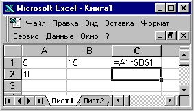 71. Какой результат будет вычислен в ячейке С2 после копирования в нее формулы из ячейки C1, которая содержит абсолютную и относительную ссылку?