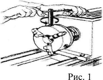 1.1. Подключить электродвигатель к электросети. Обеими руками вращая равномерно против часовой стрелки патронный ключ, развести кулачки на величину, несколько превышающую диаметр закрепляемой заготовки (рис. 1).