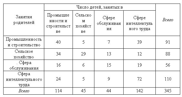 Вопрос Ниже приведены данные о распределении выпускников средних школ по сферам занятости с выделением аналогичных общественных групп их родителей.