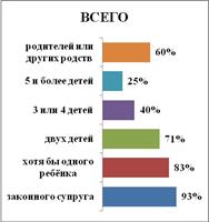 Рисунок 3. Семейный образ жизни ассоциируется с наличием законного супруга даже сильнее, чем с наличием хотя бы одного ребенка (93% против 83%). У нормальной семьи не может быть иной основы, кроме законного брака. Если семья создается без брака, в результате рождения ребенка у одинокой матери, то это будет изначально неполная семья. Развод или смерть одного из супругов разрушают брачный союз, как основу семьи: в результате полная семья становится неполной и не может в полной мере выполнять свои функции. В первую очередь это касается воспитательной функции, в которой, при нормальной ситуации, всегда должны участвовать оба родителя. После распада семьи многие матери вынуждены брать на себя отцовскую роль, то есть, зарабатывать деньги. Нередко им приходится работать далеко от дома, по вечерам или по выходным. Бывает, что мать довольно успешно справляется с отцовской ролью, но, чем лучше у нее это получается, тем хуже она выполняет материнскую роль, тем меньше у нее времени на воспитание детей, из-за чего они остаются безнадзорными и могут попасть в плохую компанию. Заключение Разводы вызываются многими объективными и субъективными причинами. Однако одни люди считают ту или иную причину уважительной, а другие — нет. Мнения об уважительности многих причин развода зависят от того, что преобладает в системе ценностей: индивидуализм или фамилизм. Люди, которые ставят свободу личности выше семьи, считают уважительной причиной развода не только чрезмерное ограничение личной свободы в браке, но и многие другие обстоятельства, указанные в анкете. Чем больше распространяются в обществе эти индивидуалистические ценности, тем меньше значение имеют фамилистические ценности, то есть, ценности семейного образа жизни. Никакое общество не может существовать без семьи. Если победит индивидуализм, то какой социальный институт, кроме семьи, сможет обеспечивать демографическое воспроизводство населения и социализацию новых поколений? Неполные семьи, образовавшиеся в результате разводов, не справятся с этой ролью. Подавляющее большинство из этих семей — однодетные. Такие семьи не обеспечивают воспроизводство населения ни в количественном, ни в качественном отношении. Большинство детей в неполных послеразводных семьях не имеют братьев и сестер, что способствует формированию у них индивидуализма и даже эгоизма. Из-за отсутствия отцов воспитание носит однобокий женский характер, что негативно отражается на социализации детей, особенно мальчиков [16]. Окончательная победа индивидуализма над фамилизмом не только не соответствует интересам общества, но и ведет к его физическому исчезновению. 1. Синельников А. Б. Уважительные причины развода // Демографические исследования, 2009, № 8–9 — http://www.demographia.ru/articles_N/index.html?idR=20&idArt=1476. 2. Синельников А. Б. Развод как домашняя революция // Демографические исследования, 2009, № 10 — http://www.demographia.ru/articles_N/index.html?idR=20&idArt=1579 3. Анкета разработана автором вместе со студентами социологического факультета МГУ, которые посещали его спецкурс «социология брака и развода» и дважды размещалась на разных сайтах: первый раз зимой 2007—2008 гг., второй раз — с осени 2008 до весны 2009 г. Автор выражает признательность А. Н. Паниткову за содействие в размещении анкет. Всего вошло в разработку 306 анкет: 117 мужских и 189 женских. 4. Синельников А. Б. Тра