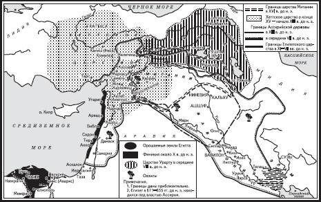 Самой ранней из мировых держав I тысячелетия до н. э. было Новоассирийское царство. Ассирия сильно изменилась по сравнению с эпохой архаичных среднеассирийских законов XV в. до н. э. Давно ушли в прошлое порядки, при которых важную, а то и решающую роль в Ашшуре играли должностные лица, избираемые городской общиной. Во главе Ассирийского царства стоял полновластный монарх. Этнически цари принадлежали к одной из групп западных семитов – арамеям, и это стало одной из причин широкого распространения арамейского языка при дворе, а затем и превращения его в язык канцелярии на всей территории Передней Азии. Для историка это имеет одно неприятное последствие: по-арамейски писали не на глине, а чаще всего на коже, и чем шире распространялся этот язык, тем меньше сохранившихся документов. Правители Ассирии, стремившиеся к территориальным захватам, вели бесконечные войны с соседями. За пограничные территории и за «железный путь», проходивший в Северной Сирии, Ассирия долго соперничала с горным царством Урарту, образовавшимся на рубеже II–I тысячелетий до н. э. из союза племен, населявших район оз. Ван в Армении. Борьба шла с переменным успехом, и лишь в 714 г. до н. э. ассирийский царь Саргон II разгромил урартские войска и разграбил священный центр урартов Муцацир. По сообщению ассирийского летописца, урартский царь Руса I, не снеся позора поражения, бросился в огонь, уничтожавший его город. Другим направлением завоевательной политики ассирийцев было западное – там располагалось Дамасское царство и богатые финикийские города на побережье Средиземного моря. В начале VII в. до н. э., при царе Асархаддоне, эти области окончательно вошли в состав Ассирийской державы. Асархаддон оставил об этих событиях торжественную победную надпись. Перевод ее вдохновил когда-то В. Я. Брюсова на поэтическое переложение: Я – вождь земных царей и царь, Ассаргадон. Владыки и вожди, вам говорю я: горе! Едва я принял власть, на нас восстал Сидон. Сидон я ниспроверг и камни бросил в море. <…> Я исчерпал до дна тебя, земная слава! И вот стою один, величьем упоен, Я, вождь земных царей и царь – Ассаргадон. Величественный образ могучего владыки Асархаддона, рисуемый в его победных надписях на статуях и каменных стелах, резко контрастирует с тем, который возникает при чтении глиняных табличек, составленных по его приказу. Царь отличался необычайным суеверием и, боясь неблагоприятных предзнаменований и примет, постоянно созывал гадателей, пытаясь угадать, чем грозит ему неумолимая судьба. Сражения в северной и центральной части Восточного Средиземноморья естественным образом привели ассирийцев в район Палестины, где в то время существовали два еврейских государства: северное – Израильское царство со столицей в г. Самарии и южное – Иудейское царство со столицей в г. Иерусалиме. Саргон II в 722 г. до н. э. захватил Самарию и уничтожил Израильское царство. Разгром его сопровождался, как это было принято у ассирийцев, депортацией значительной массы израильтян и расселением на этой территории представителей других народностей. Иерусалим был более удачлив: выдержал осаду, но вынужден был заплатить ассирийцам огромный выкуп. Иудейское государство просуществовало еще более века после падения Израиля. Между тем экспансия ассирийцев не ограничилась Азией: их войска проникли и в Севе