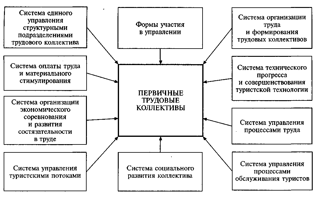 Одна из важнейших задач в развитии организации — создание наиболее благоприятных условий для реализации возможностей человека, которые появятся благодаря внедрению механизма, предусматривающего широкие права самостоятельных хозяйственных звеньев и их трудовых коллективов в сочетании с высокой ответственностью за конечные результаты работы и развитыми формами демократического управления (самоуправления). При изучении проблемы самоуправления возникает ряд вопросов: как понимать самоуправление и каковы внешние и внутренние формы его проявления; каков уровень развития самоуправления в современных условиях; как зависят система планирования, организационная структура, хозрасчетные отношения, оплата труда и другие подсистемы управления от развития самоуправления? Самоуправление трактуется нами как демократизация управления, обеспечивающая работникам возможность в различных формах участвовать в процессе принятия решений, влиять на положение дел в фирме. Понятие «самоуправление» выражает довольно устойчивый тип социального образования или общественных отношений. Полностью самоуправляемой считается система, если она не имеет над собой ни одного вышестоящего органа управления (например, частная туристическая фирма). Организация самоуправляема частично в том случае, если она представляет собой объект (элемент, звено, подсистему) в более сложной иерархической структуре (ряд туристических фирм входит в состав ОАО). Степень такой самоуправляемости определяется мерой централизации (децентрализации), или соотношением между внешним управлением, реализуемым со стороны вышестоящего органа, и внутренним управлением, исходящим от управляющего субъекта системы. Таким образом, самоуправление на любом уровне управления представляется как процесс превращения человека, всего трудового коллектива из объекта управленческой деятельности в ее субъект. Это особый вариант организации управления, когда коллектив сам решает вопросы комплектования бригады либо иного коллективного формирования, распределения трудовых функций и совместного заработка. Речь идет о простейшем виде коллективности — ассоциации трудящихся, регулирующей реальное соединение работников со средствами производства и распределение по труду, т.е. осуществляющей ключевые организационно-экономические процессы. Самоуправление в этом смысле соединяет в себе труд и управление — иными словами, складывается новый тип социально-экономических отношений между равноправными субъектами в процессе их совместной трудовой деятельности по поводу управления. Такие отношения условно можно назвать подходом «снизу». Примером подобных преобразований «снизу» являются хозрасчетные бригады, подрядные и арендные коллективы. Именно на этом — низшем, но основном уровне самоуправления вырабатываются те направления и способы его дальнейшего развития и углубления, которые могут быть распространены и на более «высокие» ступени управления. Преобразование хозяйственного механизма организации объективно предполагает демократизацию управления (самоуправление), так как решить все вопросы в новом организационно-экономическом механизме можно только через заинтересованность и творческую деятельность всех работников, осознавших себя полноправными и реальными уча