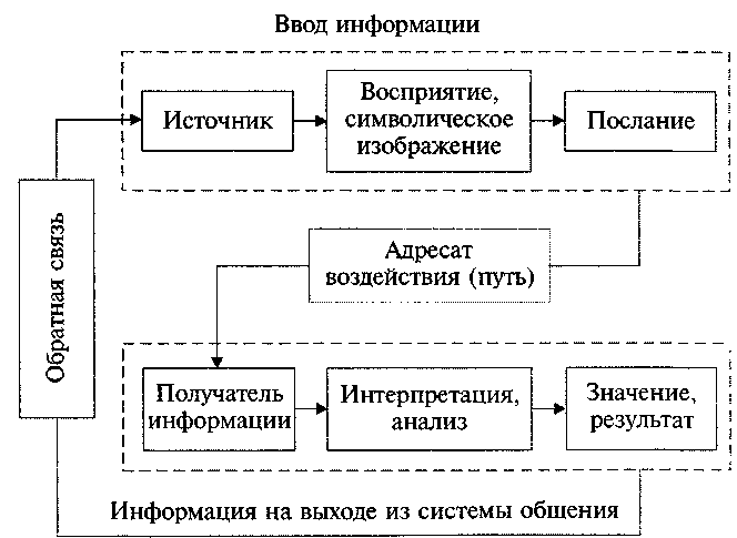 Общение — основная форма человеческого бытия, извечное свойство человека. Французский писатель Антуан де Сент-Экзюпери называл общение людей роскошью. Эта роскошь делает человека человеком. Отсутствие или недостаток общения деформируют человеческую личность. Таким образом, общение — важнейшая форма взаимодействия людей. У большинства людей процессы общения занимают до 70 % времени, а менеджеры на различные виды общения тратят в среднем 80 % своего рабочего времени. В процессе общения одни люди передают другим свои идеи. Между ними устанавливается обратная связь, в их поведение вносятся определенные коррективы (рис. 10.1).