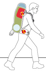 · Положите спальный мешок, снаряжение из пуха и другие легкие вещи в нижнее отделение рюкзака. Поместите более тяжелые вещи, такие как одежда наверх наружу. Тяжелое снаряжение — палатку, еду, тяжелые куртки — выше уровня плеч, ближе к спине. · Положите мелкие, часто используемые вещи в карман на крышке рюкзака, чтобы их было легко достать. · Неправильное положение центра тяжести рюкзакаЧтобы повысить обтекаемость рюкзака, уменьшить поверхность воздействия ветра и влаги, нужно стараться размещать все вещи внутри рюкзака, как можно плотнее, и как можно меньше оставлять прикрепленными на ремнях снаружи. · Сохраняйте равномерное распределение веса, в особенности в боковых карманах. · Используйте компрессионные мешки для организации вещей и уменьшения их совокупного объема. Также рекомендуется использовать гермомешки для особо чувствительных к влаге вещей (например, для спальника).