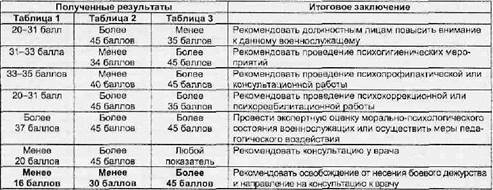 При получении соотношений результатов, не описанных в таблице, морально-психологическое состояние военнослужащего признается соответствующим требованиям, предъявляемым к несению боевого дежурства.