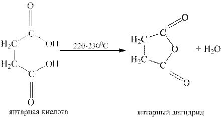 Ангидриды некоторых дикарбоновых кислот образуются при нагревании их и в отсутствие водоотнимающих средств. Важно, чтобы образующийся циклический ангидрид содержал пяти- или шестичленный цикл. Такие ангидриды образуют, например, янтарная, глутаровая и фталевая кислоты.