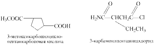 В заключении этого раздела приведем названия некоторых типичных функциональных групп производных карбоксильной группы: COOR – группа называется «алкоксикарбоксил», CONH2 – «карбамоил», COCl – «хлорформил», CN – «циано». Так называются эти группы в полифункциональнозамещенных циклоалканах и алканах.