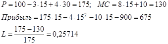 Рассмотрим фирму, обладающую монопольной властью. Кривая спроса выражается как Р=100-3Q+4А1/2 Кривая совокупных издержек имеет вид С=4Q2+10Q+А Где А – уровень расходов на рекламу; Р и Q – цена и объем выпуска соответственно. а) Найдите величину А, Q, Р которые максимизируют прибыль фирмы. б) Подсчитайте индекс монопольной власти Лернера – L=(P-MC)/P – для данной фирмы при величинах A, Q, P максимизирующих прибыль