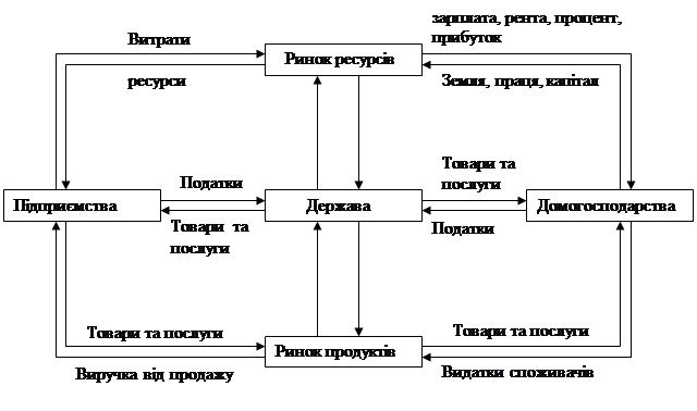 6. Економічна система, та взаємодія її суб’єктів у моделі економічного кругообігу. Типи і еволюція економічних систем. (я не знаю, что про эволюцию писать) Економічна система - це сукупність взаємопов’язаних і певним чином упорядкованих елементів економічної системи, які формують певну цілісність – економічну структуру, та мають загальну мету (мікроекономіка – підприємство, макроекономіка – економіка держави). Структура економічної системи – це сукупність взаємопов’язаних підсистем та елементів системи. Структура економічної системи у вигляді взаємозв’язків, які виникають між основними суб’єктами економіки: 1) домашнє господарство – це економічний суб’єкт, який функціонує як споживач товарів та послуг, є власником економічних ресурсів і може складатися з однієї або декількох осіб. 2) підприємство(фірма) – це самостійно господарюючий суб’єкт, який має права юридичної особи та здійснює виробничу, комерційну та науково дослідницьку діяльність з метою максимізації прибутку. 3) держава – це економічний суб’єкт, представлений державною власністю та державним регулюванням, які формують державний сектор.