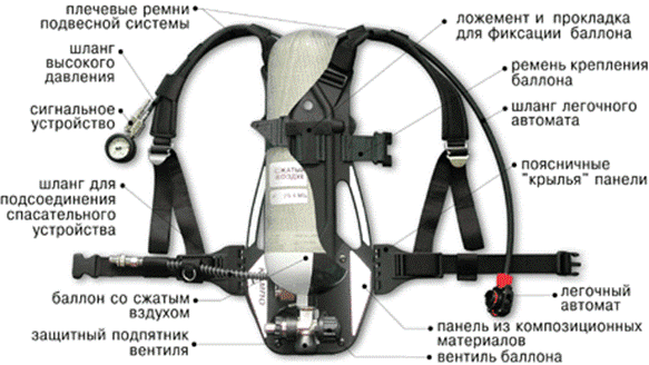 1. Подвесная система*** - включает подвесную панель, поясные и плечевые ремни, редуктор и сигнальное устройство с манометром. а). Стандартная подвесная система, для всех исполнений аппарата*** б). Подмягченная подвесная система 2. Легочный автомат от аппарата АП-98-7К со шлангом, для всех исполнений аппарата***: 3. Маска «ПАНАСИЛ»*** - неопреновая с ременным оголовьем, для всех исполнений аппарата*** - неопреновая с сетчатым оголовьем - силиконовая с ременным оголовьем - силиконовая с сетчатым оголовьем 3. Баллон с вентилем*** 4.1 Для исполнения №1 – баллон стальной 7,0 л / 300 кгс/см2, масса баллона 9 кг 4.2 Для исполнения №2 – баллон металлокомпозитный 7,0 л /300 кгс/см2, масса баллона 5,5 кг 4.3 Для исполнения №3 – баллон металлокомпозитный 6,8 л /300 кгс/см2, масса баллона 3,9 кг 5. Дополнительное оборудование: 5.1 Спасательное устройство с комплектом проверочных заглушек 5.2 Шланг с быстроразъемным замком для подключения спасательного устройства 5.3 Манометр 5.4 Чехол защитный для металлокомпозитного баллона 9 л 5.5 Механизм защиты вентиля от непроизвольного запирания 5.6 Индикатор ИР – 2 5.7 Диск проверочный ДП 5.8 Щиток сварочный 5.9 Отвертка монтажная 5.10 Смазка ВНИИ НП – 282, 150 гр.