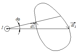 Розглянемо прямий струм у тонкому провіднику, обмежимо його плоским контуром довільної форми.