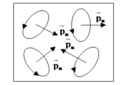 За відсутності зовнішніх полів речовина не проявляє магнітних властивостей, внаслідок теплового руху атомів. При дії магнітного поля