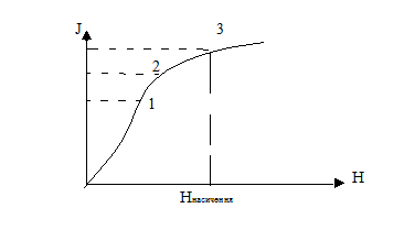 Особливості: 1) нелінійність намагнічування 2) наявність насичення