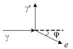 3. На рисунке показаны направления падающего фотона (γ), рассеянного фотона (γ') и электрона отдачи (е). Угол рассеяния 90°. направление движения электрона отдачи составляет с направлением падающего фотона угол α =30°. Если импульс падающего фотона p ф, то импульс электрона отдачи равен...