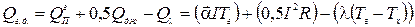 где R – электрическое сопротивление термоэлементов, Ом. Считается, что в первом приближении Qдж распределяется между спаями поровну, т.е.: Qхдж = Qгдж = 0,5 Qдж. Во-вторых, за счет теплопроводности материала термобатареи, часть теплоты от горячего спая передаётся холодному спаю в количестве