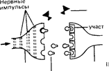 Синапс. Синапсом называют область соединения между окончанием аксона одного нейрона и дендритами или телом другого. Каждый нейрон может образовать до 800-1000 синапсов с другими нервными клетками, а плотность этих контактов в сером веществе мозга составляет боле 600 млн. на 1 ми3 (рис. A.30)1. Место перехода нервного импульса с одного нейрона на другой
