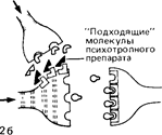 Рис. А.31. la. Медиатор А, молекулы которого освобождаются из концевой бляшки нейрона I, связывается специфическими рецепторами на дендритах нейрона II. Молекулы X, которые по своей конфигурации не подходят к этим рецепторам, занять их не могут и потому не вызывают каких-либо синаптических эффектов. 16. Молекулы М (например, молекулы некоторых психотропных препаратов) сходны по своей конфигурации с молекулами нейромедиатора А и поэтому могут связываться с рецепторами для этого медиатора, таким образом мешая ему выполнять свои функции. Например, ЛСД мешает серотонину подавлять проведение сенсорных сигналов. 2а и 26. Некоторые вещества, называемые нейромодуляторами, способны воздействовать на окончание аксона, облегчая или подавляя высвобождение нейромедиатора. представляет собой, собственно, не точку контакта, а скорее узкий промежуток, называемый синоптической щелью. Речь идет о щели шириной от 20 до 50 нанометров (миллионных долей миллиметра), которая с одной стороны ограничена мембраной пресинаптической бляшки нейрона, передающего импульс, а с другой - постсинаптической мембраной дендрита или тела другого нейрона, принимающего нервный сигнал и загем передающего его дальше. Нейромедиаторы. Именно в синапсах происходят процессы, в результате которых химические вещества, освобождаемые пресинаптической мембраной, передают нервный сигнал с одного нейрона на другой. Эги вещества, получившие название нейромедиаторов (или просто медиато-ров),- своего рода «мозговые гормоны» (нейрогормоны) - накапливаюг- 268 Приложение А ся в пузырьках синаптических бляшек и освобождаются, когда по аксону сюда приходит нервный импульс. После этого медиаторы диффундируют в синаптическую щель и присоединяются к специфическим рецепторным участкам постсинаптиче-ской мембраны, т. е. к таким участкам, к которым они «подходят, как ключ к замку». В результате этого проницаемость постсинаптической, мембраны изменяется, и таким образом сигнал передается с одного нейрона на другой; медиаторы могут также и блокировать передачу нервных сигналов на уровне синапса, уменьшая возбудимость постси-наптического нейрона. Выполнив свою функцию, медиаторы расщепляются или нейтрализуются ферментами либо всасываются обратно в пресинаптическое окончание, что приводит к восстановлению их запаса в пузырьках к моменту прихода следующего импульса (рис. А.31). Возбуждающая или тормозная функция синапса зависит главным образом от типа выделяемого им медиатора и от действия последнего на постсинаптическую мембрану. Некоторые медиаторы всегда оказывают только возбуждающее действие, другие - только тормозное (инги-бирующее), а третьи в одних отделах нервной системы играют роль активаторов, а в других-ингибиторов. Функции главных нейромедиаторов. В настоящее время известно несколько десятков этих нейрогормонов, но их функции изучены пока недостаточно. Сказанное, например, относится к ацетилхолину, который участвует в мышечном сокращении, вызывает замедление сердечного и дыхательного ритма и инактивируется ферментом ацетилхолинэстера-зoй\. Не вполне изучены и функции таких веществ из группы моноами-нов, как норадреналин, отвечающий за бодрствование мозговой коры и учащение сердечного ритма, дофамин, присутствующий в «центрах удовольствия» лимбической системы и некот