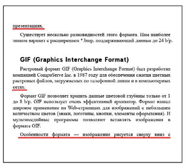 Похожие шрифты. Если вы используете больше одного шрифта в публикации, они должны заметно отличаться один от другого. Поищите контрастные в написании шрифты. Обычно берутся шрифты рубленые для заголовков и с засечками (serif) для текста либо декоративные для заголовков и с засечками или рубленые для основного текста. Слишком похожие шрифты создадут ощущение неопрятности или "недоделки" работы. Но и другая крайность вредит. Переизбыток шрифтов. Это одна из наиболее распространенных ошибок дизайна печатных изданий. Документ выглядит путаным и непрофессиональным. Оставьте два контрастных по начертанию шрифта и творите. Подчеркивание слов ухудшает читаемость текста. Если необходимо выделить фразу или слово, используйте полужирное или курсивное начертание или выделите фразу цветом. Когда в тексте много подчеркнутых слов, возникает ощущение беспорядка и путаницы. При подчеркивании нижние выносные элементы букв теряются, что затрудняет чтение. Ненужные спецэффекты. Ни один дизайнер не будет злоупотреблять декоративными шрифтами, различными эффектами, размещением текста в сложные формы или его поворотами. Выразительный и ясный дизайн ничем не заменить. Множество графических эффектов только затруднит процесс чтения и восприятия. И еще несколько советов для тех, кто хочет быть профессионалом в верстке. • Избегайте появления висячих строк в тексте. Висячей строкой называется строка, оторванная от абзаца или очень короткая последняя (рис.24.6.). Для удаления висячих строк меняют расстановку переносов или меняют расстояние между символами или словами. • В конце строк не должно быть большого количества переносов. Обычно допускается не более двух строк с переносами подряд. Исправляется недостаток так же, как и в предыдущем случае. • Следует пользоваться типографскими знаками тире, кавычек и др.