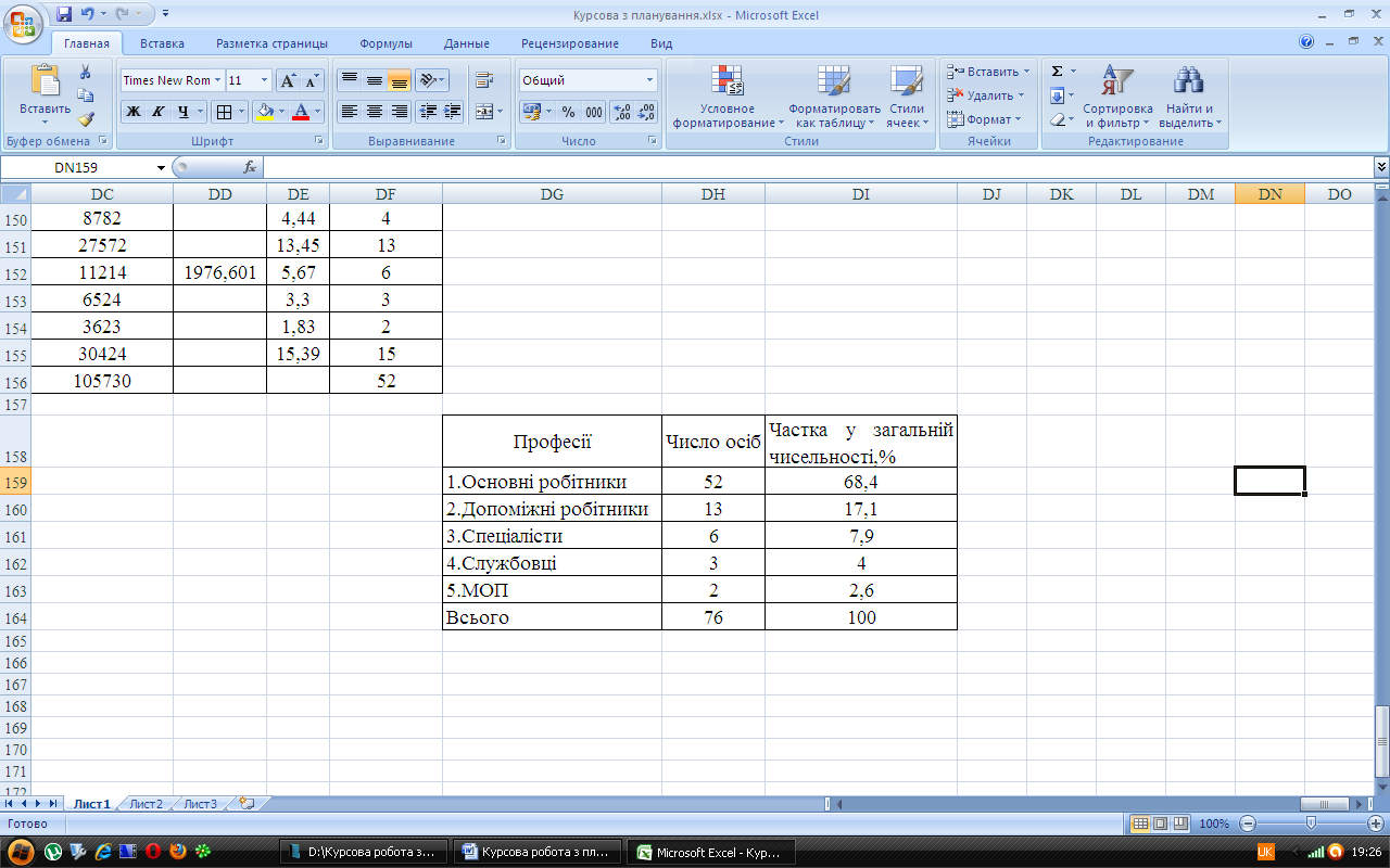 Планова чисельність допоміжних робітників Таблиця 5.2