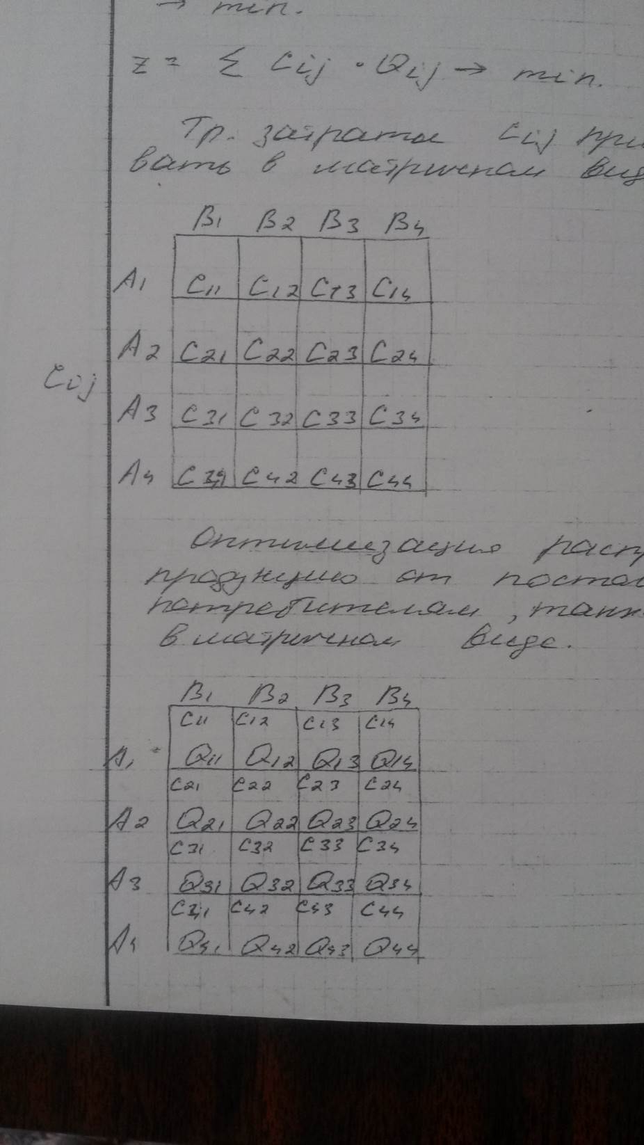 Оптимизация распределения продукции от поставщиков к потребителям, также показывается в матричной форме.
