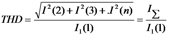 Управляемый выпрямитель отрицательно влияет на питающую сеть переменного тока. Во первых, он потребляет из сети несинусоидальный ток. Во-вторых, он сдвигает фазу потребляемого тока относительно питающего напряжения. Несинусоидальность тока может быть охарактеризована коэффициентом гармоник (THD- Total Harmonic Distorsion)