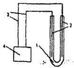 Рис. 9.1. Прибор для проведения электролиза: 1 – U- образный сосуд с раствором электролита; 2 – электроды; 3 – токопроводящие проволоки;
