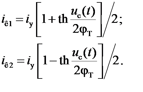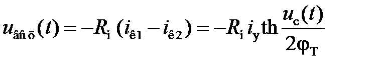 При малых значениях входных сигналов (| U c| << φT) выходное напряжение u вых(t) дифференциальной пары транзисторов равно произведению напряжения u c(t) на величину эмиттерного тока i y: