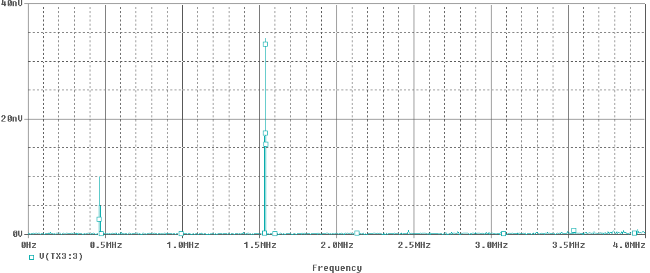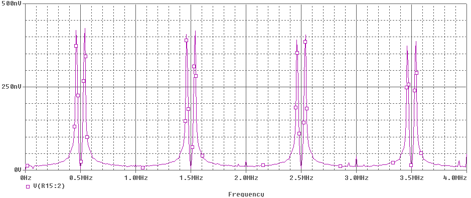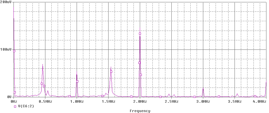 Рис. П2.4. Спектр частот на выходе преобразователя частоты на основе двойного балансного смесителя