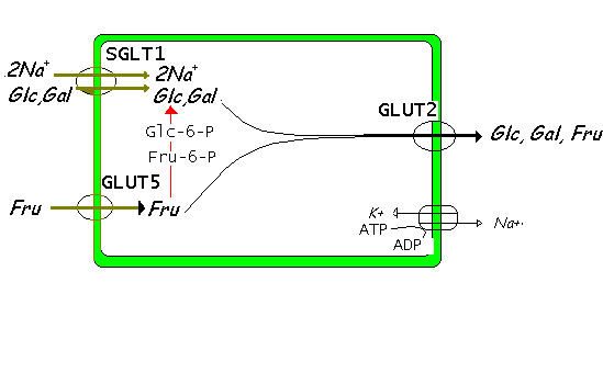 Углеводы – это многоатомные спирты содержащие оксогруппу. По количеству мономеров все углеводы делят на: моно-, ди-, олиго- и полисахариды. Моносахариды по положению оксогруппы делятся альдозы и кетозы. По количеству атомов углерода моносахариды делятся на триозы, тетрозы, пентозы, гексозы и т.д. Функции углеводовМоносахариды – углеводы, которые не гидролизуются до более простых углеводов. Моносахариды: · выполняют энергетическую функцию (образование АТФ). · выполняют пластическую функцию (участвуют в образовании ди-, олиго-, полисахаридов, аминокислот, липидов, нуклеотидов). · выполняют детоксикационную функцию (производные глюкозы, глюкурониды, участвуют в обезвреживании токсичных метаболитов и ксенобиотиков). · являются фрагментами гликолипидов (цереброзиды). Дисахариды – углеводы, которые гидролизуются на 2 моносахарида. У человека образуется только 1 дисахарид - лактоза. Лактоза синтезируется при лактации в молочных железах и содержится в молоке. Она: · является источником глюкозы и галактозы для новорожденных; · участвует в формировании нормальной микрофлоры у новорожденных. Олигосахариды – углеводы, которые гидролизуются на 3 - 10 моносахаридов. Олигосахариды являются фрагментами гликопротеинов (ферменты, белки-транспортёры, белки-рецепторы, гормоны), гликолипидов (глобозиды, ганглиозиды). Они образуют на поверхности клетки гликокаликс. Полисахариды – углеводы, которые гидролизуются на 10 и более моносахаридов. Гомополисахариды выполняют запасающую функцию (гликоген – форма хранения глюкозы). Гетерополисахариды (ГАГ) являются структурным компонентом межклеточного вещества (хондроитинсульфаты, гиалуроновая кислота), участвуют в пролиферации и дифференцировке клеток, препятствуют свертыванию крови (гепарин). Углеводы пищи являются для организма человека в основном источником моносахаридов, преимущественно глюкозы. Некоторые полисахариды: целлюлоза, пектиновые вещества, декстраны, у человека практически не перевариваются, в ЖКТ они выполняют функцию сорбента (выводят холестерин, желчные кислоты, токсины и д.р.), необходимы для стимуляции перистальтики кишечника и формирования нормальной микрофлоры. Углеводы — обязательный компонент пищи, они составляют 75% массы пищевого рациона и дают более 50% необходимых калорий. У взрослого человека суточная потребность в углеводах 400г/сут, в целлюлозе и пектине до 10-15 г/сут. Рекомендуется употреблять в пищу больше сложных полисахаридов и меньше моносахаров. Переваривание углеводовПереваривание это процесс гидролиза веществ до их ассимилируемых форм. Переваривание бывает: 1). Внутриклеточное (в лизосомах); 2). Внеклеточное (в ЖКТ): а). полостное (дистантное); б). пристеночное (контактное). Переваривание углеводов в ротовой полости (полостное) В ротовой полости пища измельчается при пережёвывании и смачивается слюной. Слюна состоит на 99% из воды и обычно имеет рН 6,8. В слюне присутствует эндогликозидаза α-амилаза (α-1,4-гликозидаза), расщепляющая в крахмале внутренние α-1,4-гликозидные связи с образованием крупных фрагментов — декстринов и небольшого количества мальтозы и изомальтозы. Необходим ион Cl-. Переваривание углеводов в желудке (полостное) Действие амилазы слюны прекращается в кислой среде (рН <4) содержимого желудка, однако, внутри пищевого комка активность амилазы м