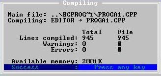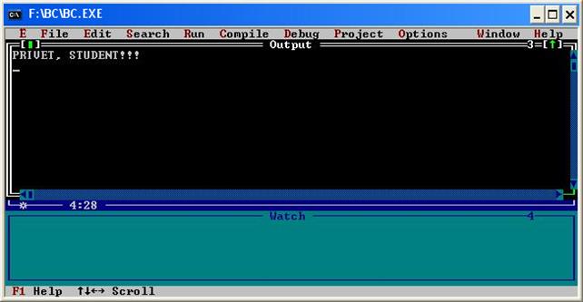 Рис. 17 Сообщение об успешной компиляции программы Чтобы запустить программу, нужно нажать в меню Run/Run или клавиши Ctrl+F9. После этого внизу в поле Message появится надпись Linking PROGA1.EXE:. Это служебная информация. Если она появилась, значит программа запустилась и выполнилась. Чтобы посмотреть на экран с надписью «PRIVET, STUDENT!!!», необходимо в меню выбрать Window/Output или нажать клавиши Alt+F5. Окно вывода данных представлено на рис. 18.