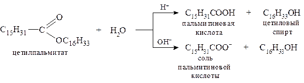 Гидролизу подвергается большинство липидов. В зависимости от строения липида продуктами гидролиза могут быть карбоновые кислоты или их соли, фосфорная кислота или ее соли, спирты, аминоспирты и углеводы. Омыляемые липиды гидролизуются с разрывом одной или нескольких сложноэфирных связей и всегда образуют карбоновые кислоты или их соли. В организме человека гидролиз липидов является первой стадией их метаболизма. Этот процесс проходит под действием ферментов липаз по механизму бимолекулярного нуклеофильного замещения SN2. На гидролиз липидов существенное влияние оказывает среда: в кислой и щелочной средах гидролиз протекает быстрее, а в средах, близких к нейтральной, - медленнее. В результате гидролиза восков образуются карбоновые кислоты (кислотный гидролиз) или их соли (щелочной гидролиз) и высшие спирты:
