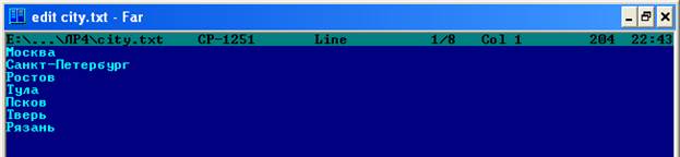 Рис. 2. Содержимое файла со списком городов для загрузки в TComboBox