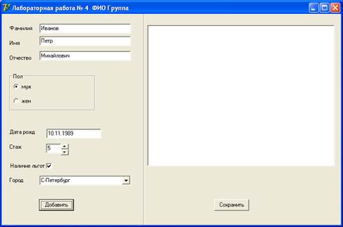 Рис.1 Пример формы с компонентами для ввода информации о сотрудниках